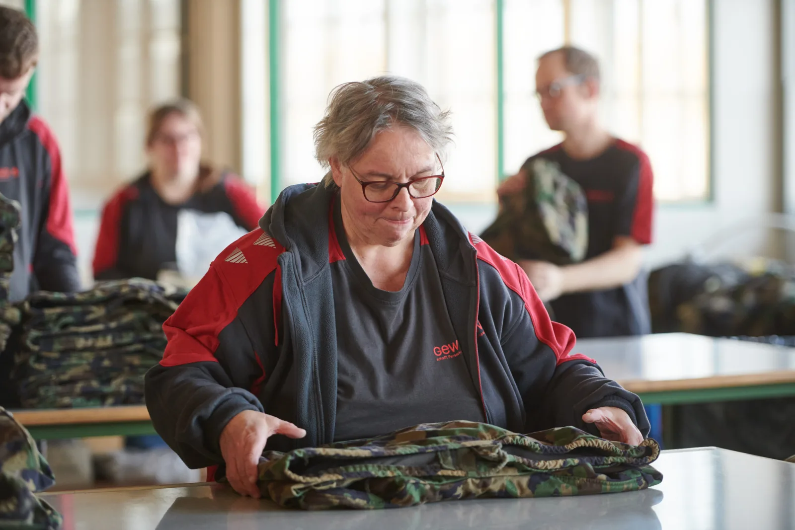 Durch unsere personellen Kapazitäten ist es uns möglich flexibel auf die Bedürfnisse der LBA reagieren und Aufträge auch parallel abwickeln zu können. Neben den Arbeiten für die Armee, setzt die GEWA in Thun auch Material für das BASPO instand. Dabei geht es um Zelte, Wolldecken und Sportartikel, die für J+S Lager verwendet und ebenfalls in der Logistikbasis Thun instandgesetzt werden.
